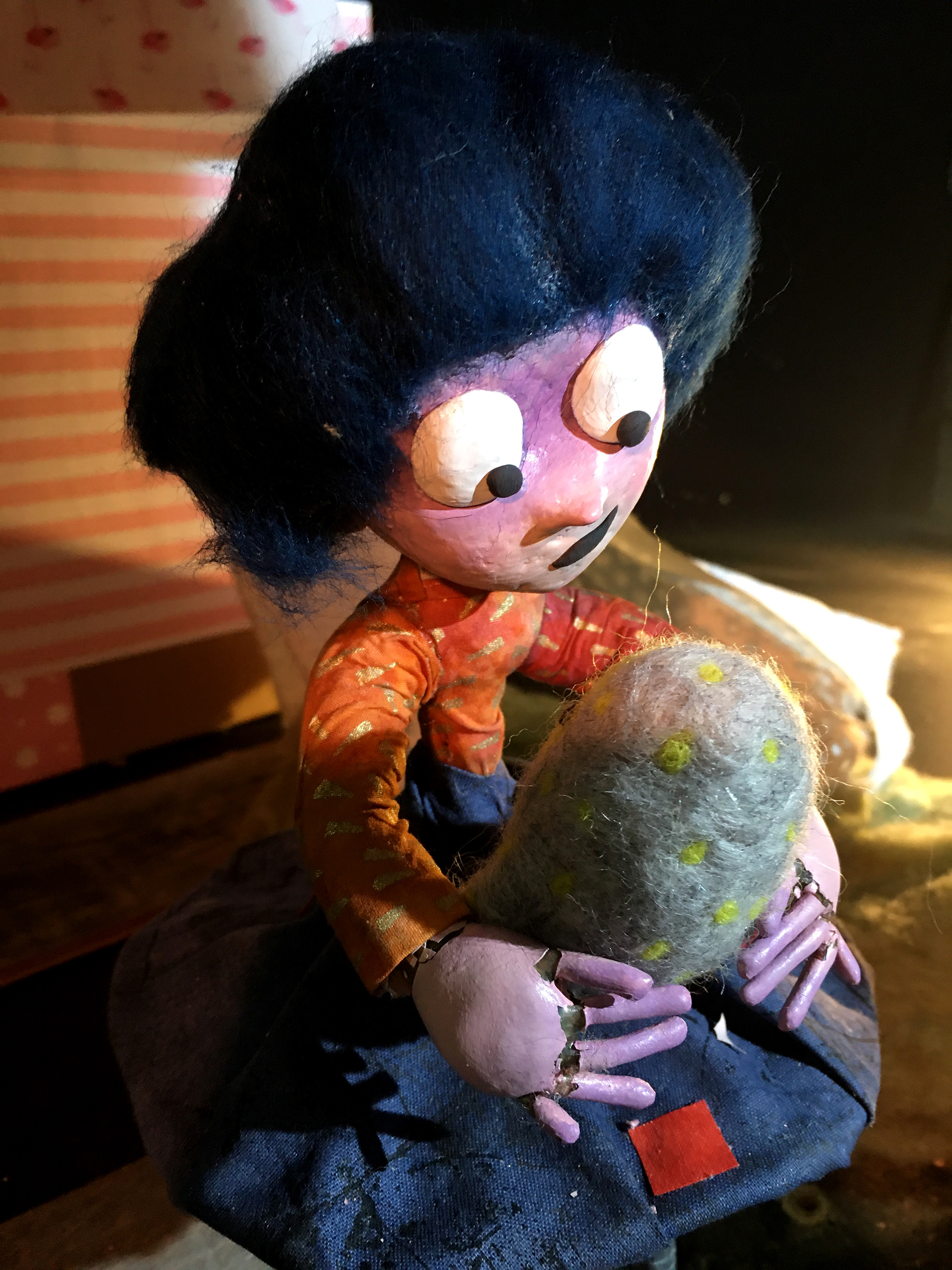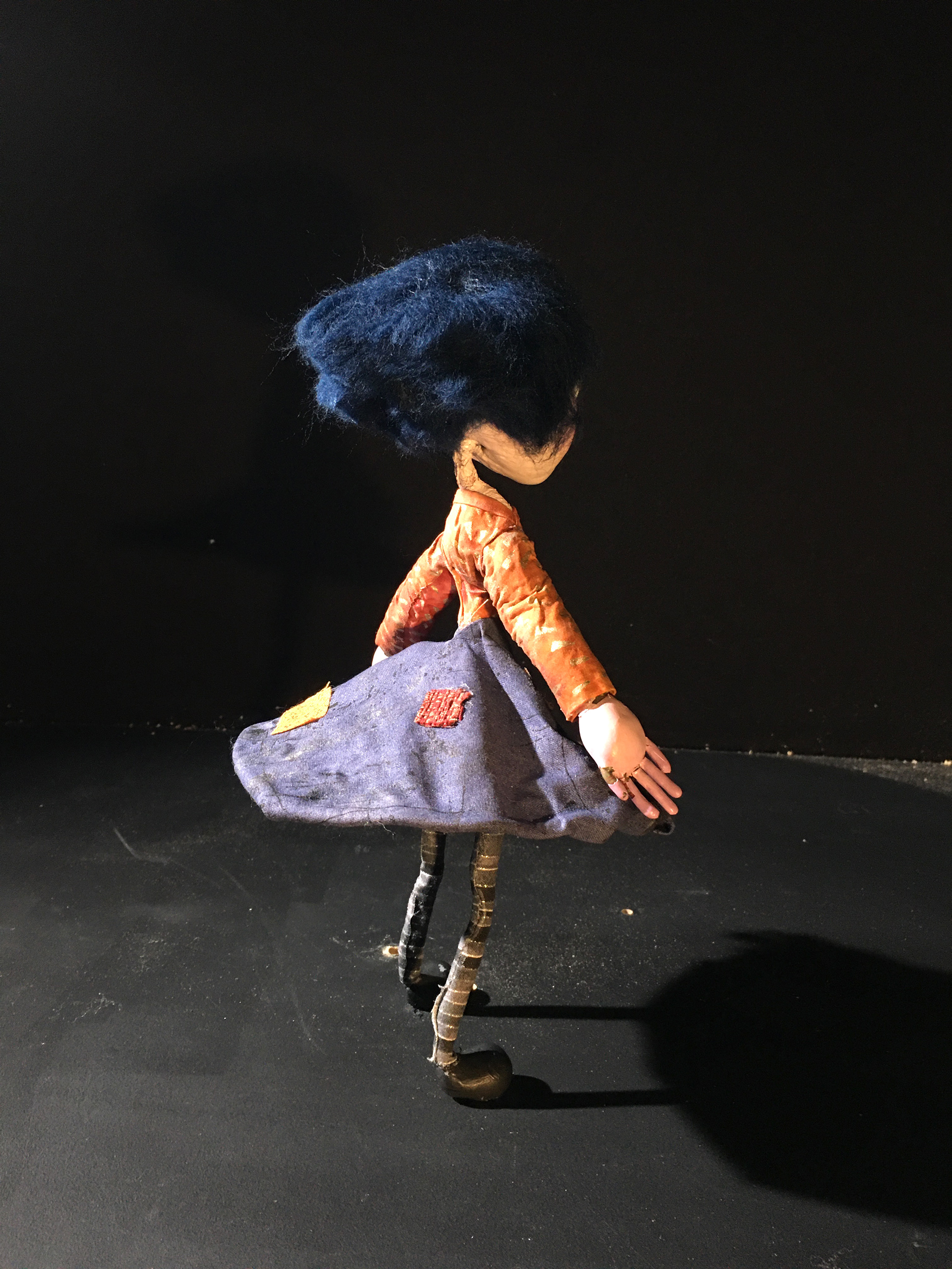 The Blue character puppet is made out of wire, epoxy resin, clay, wool, fabric, and liquid rubber, among other materials. I enjoy the process of fabrication and how it can be so meditational. Fabrication is always so rewarding because at the end of a project, imagination becomes reality and concepts are alive.