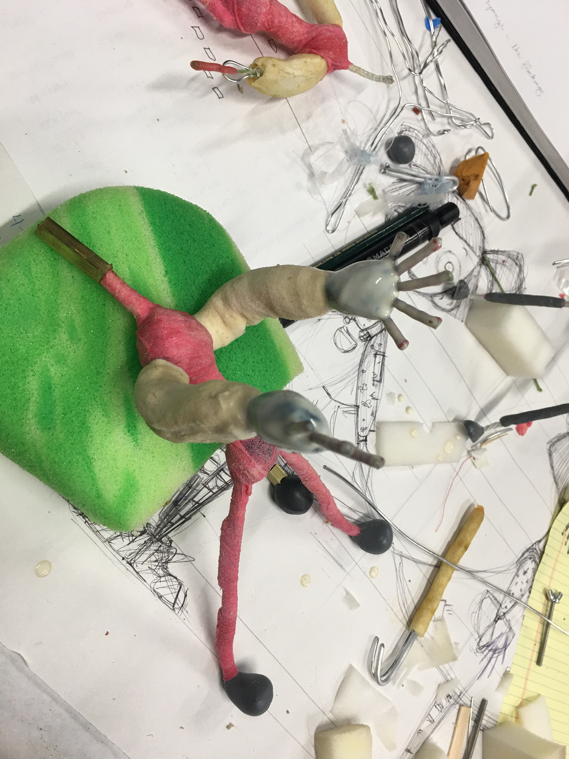 The filming process is where it gets really magical. Something about stop motion animation feels so much more natural to me than traditional 2D animation. Even though it's crazy that this thing made up of a bunch of found objects and wire instinctively wants to move and be alive. Using DragonFrame, I created a short film to test the puppet's functionality.